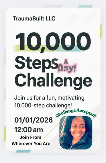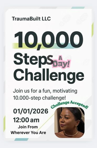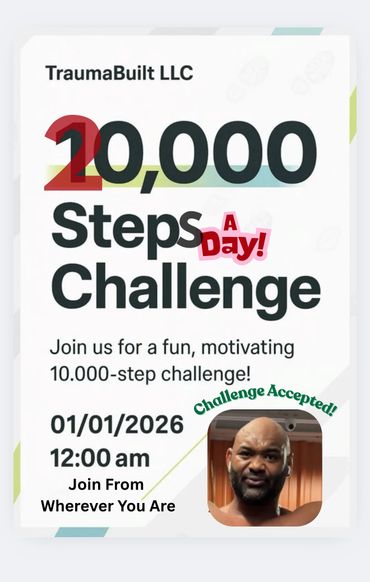 Join TraumaBuilt LLC for monthly challenges!! For the month of January we are challenging ourselves to get, at least, 10k steps a day. Visit the TraumaBuilt LLC YouTube page for details.